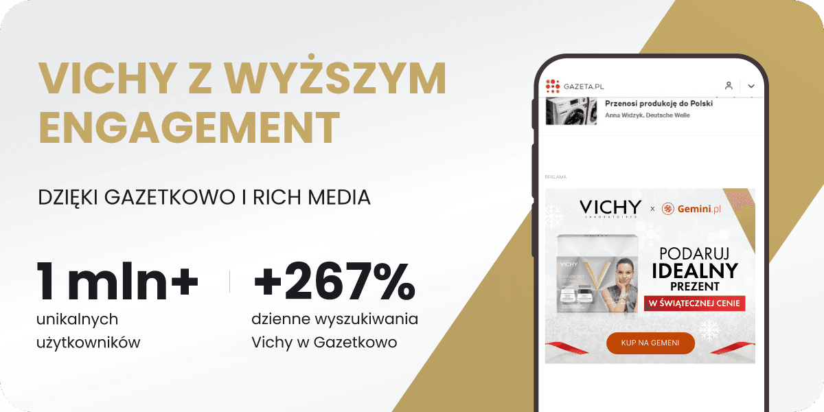 Shopperzy Gazetkowo organicznie zwiększają zaangażowanie z VICHY dzięki precyzyjnemu targetowaniu, dedykowanej sekcji Okazje i banerom Rich Media
