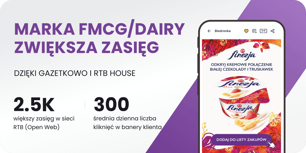 Wiodąca marka z kategorii FMCG/Dairy maksymalizuje zasięg dzięki działaniom promocyjnym prowadzonym jednocześnie w Gazetkowo i sieci RTB House