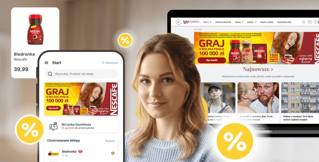 Kampanie realizowane w Gazetkowo Engage 360 docierają do konsumentów zarówno w Gazetkowo jak i na serwisach i aplikacjach innych wydawców premium (Audience Extension).