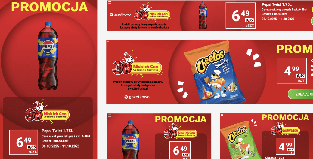 Ponadto na bieżąco sprawdzamy jak zmieniają się promocje i oferty w publikowanych gazetkach dzięki czemu kampania reklamowa jest dostosowywana w czasie rzeczywistym.